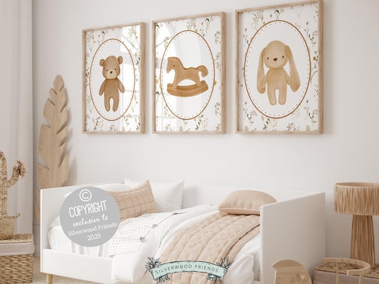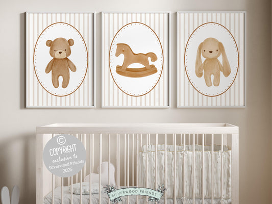 Vintage Bear Bunny Moon Nursery Prints - 003