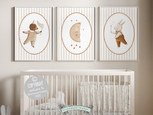 Vintage Bear Bunny Moon Nursery Prints - 002