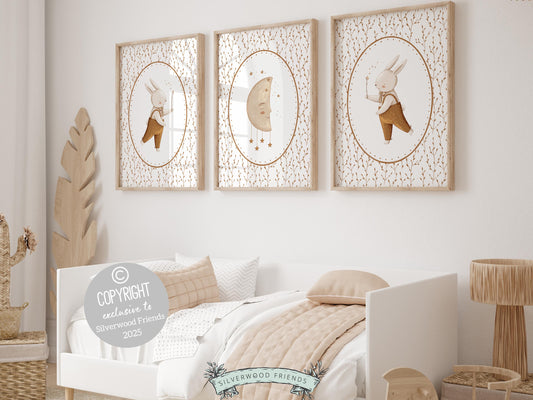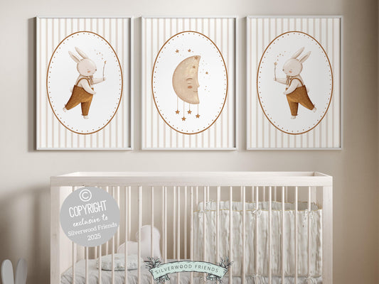 Vintage Bear Bunny Moon Nursery Prints - 003