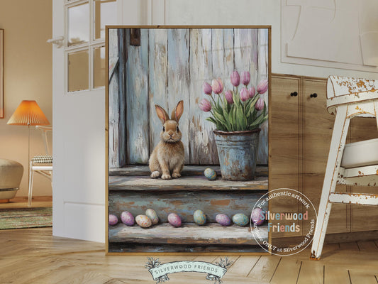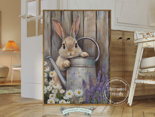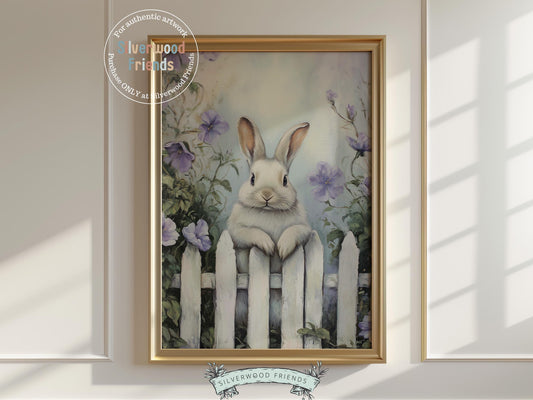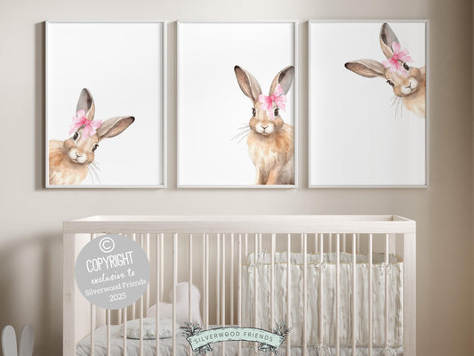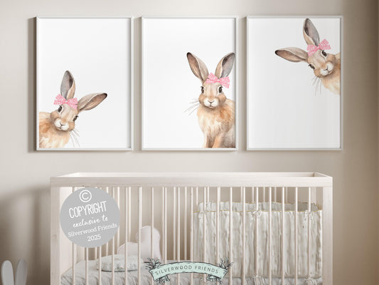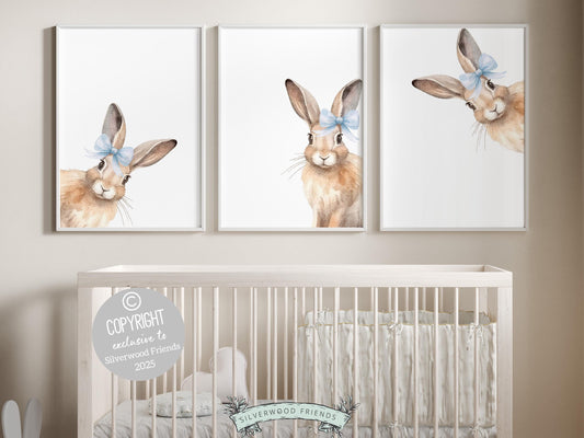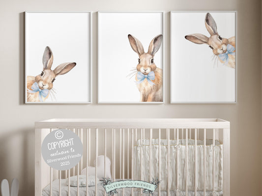 Peeking Bunny Nursery Prints - Blue Bow Tie