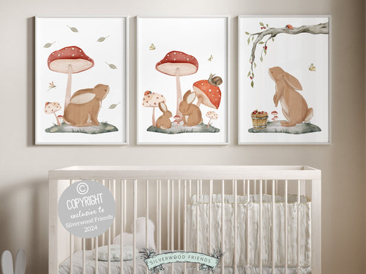 Woodland Bunny Mushroom Nursery Print
