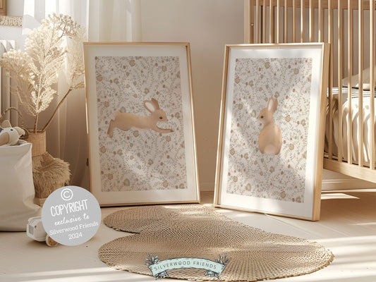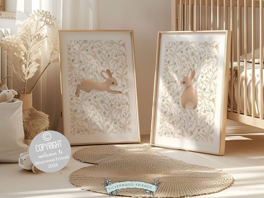 Bunny Nursery Print Set - Floral Set of 2
