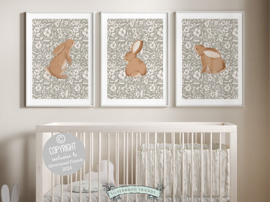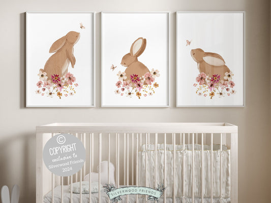Bunny Nursery Print Set - Floral Set of 3