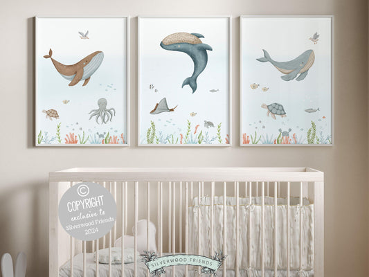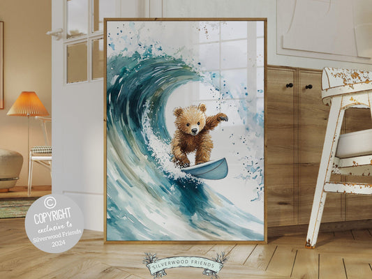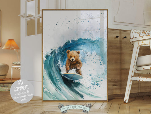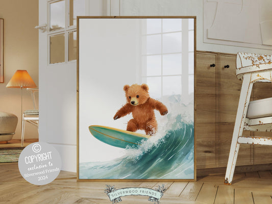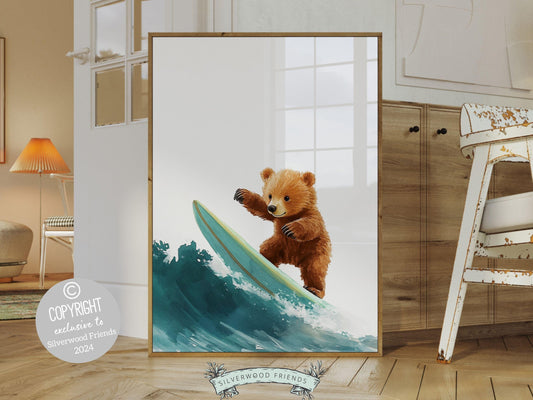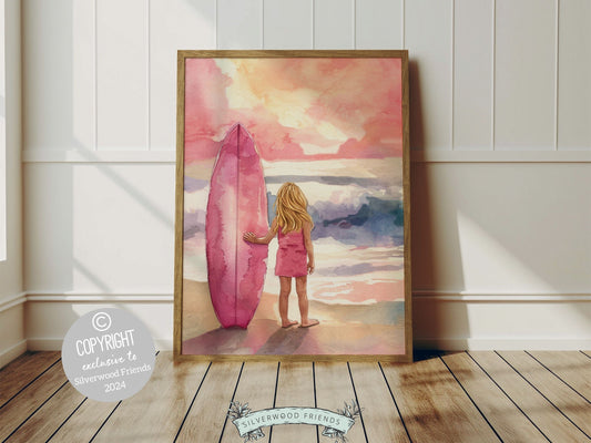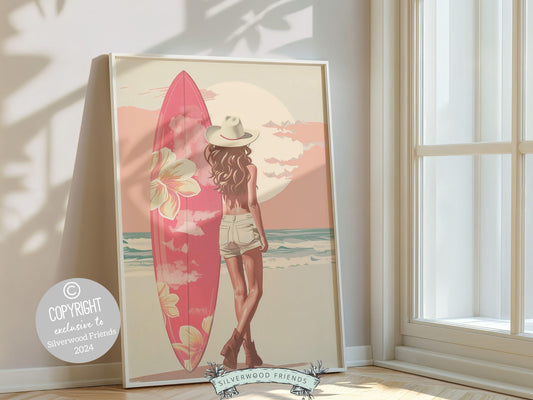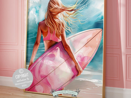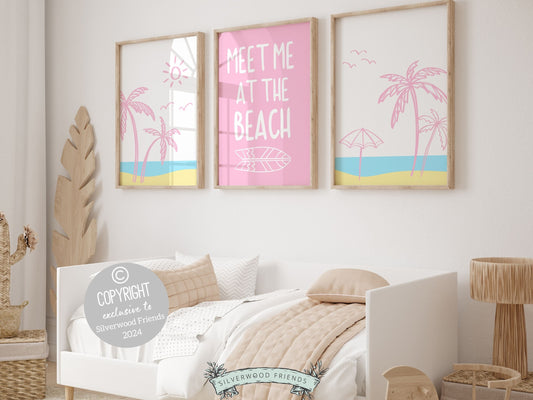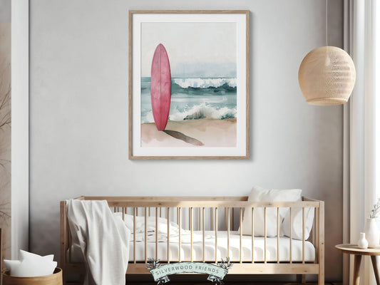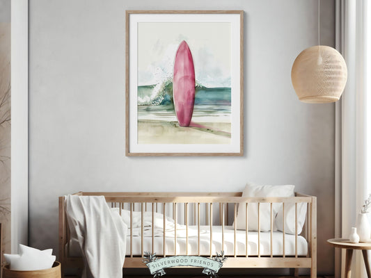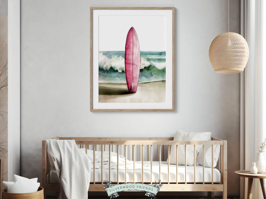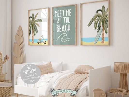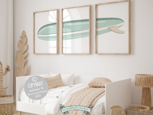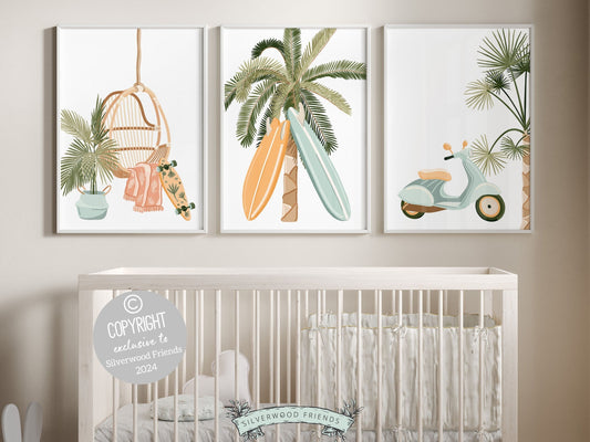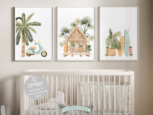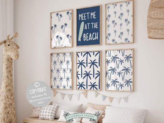 Navy Blue Surfboard Palm Tree Prints - Set of 6