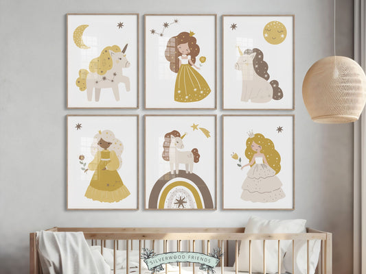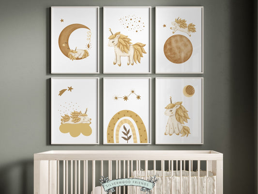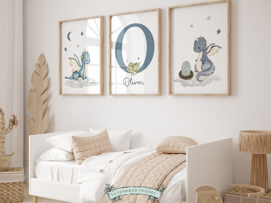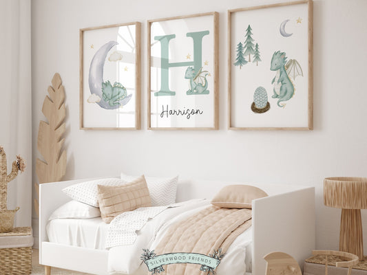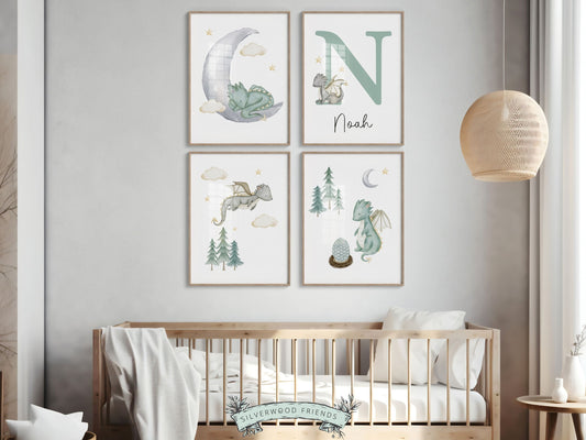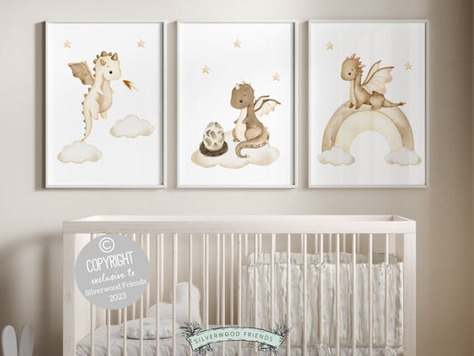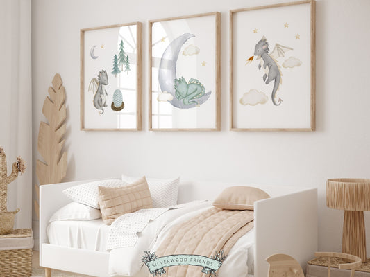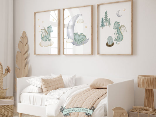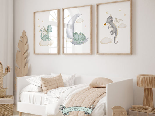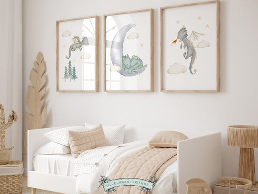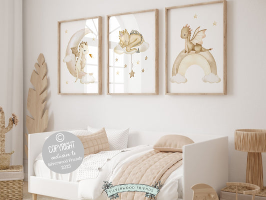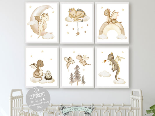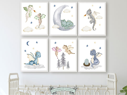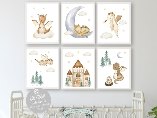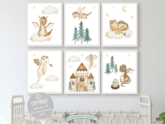 Gender Neutral Dragon Nursery Prints - Set of 6