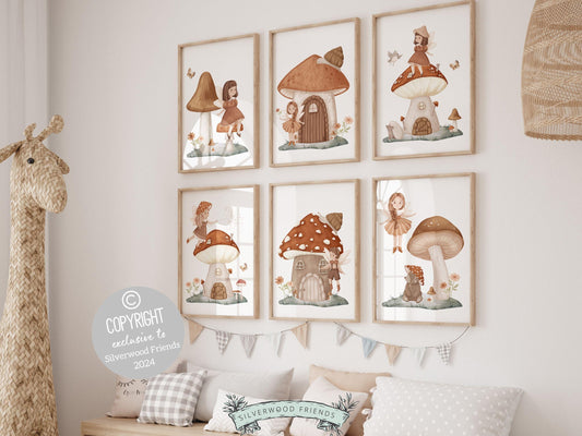 Wildflower Fairy Mushroom Nursery Prints - Set of 6 - 001