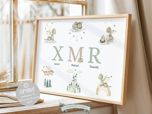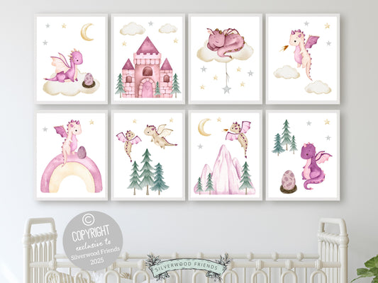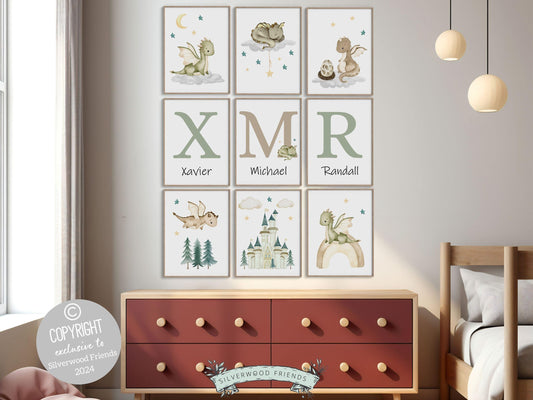 Baby Dragon Nursery Prints - Sage Beige - Set of 9