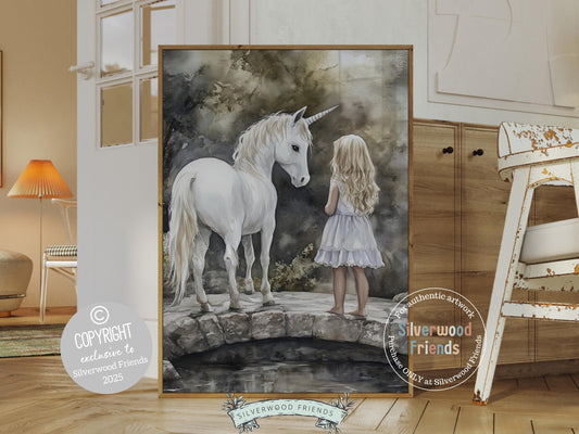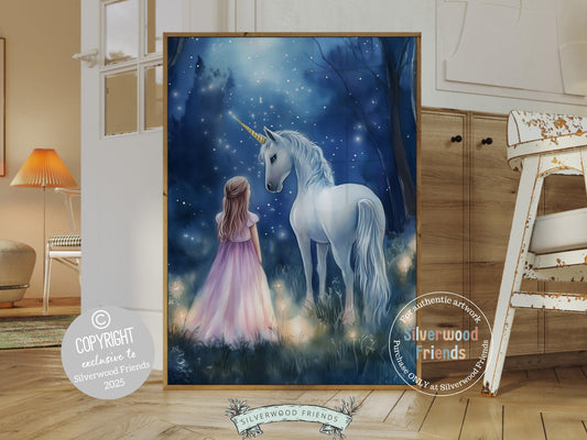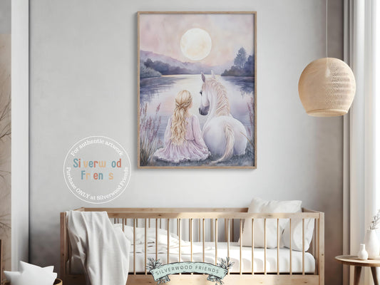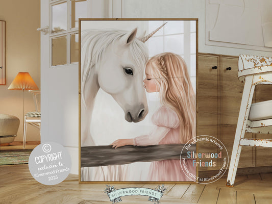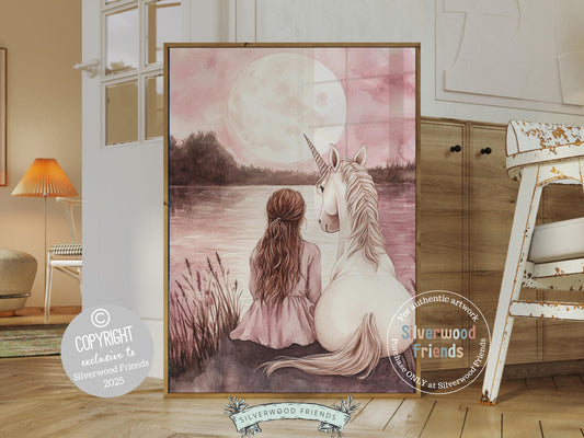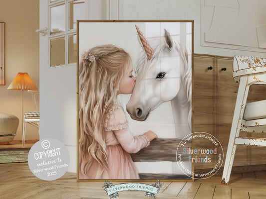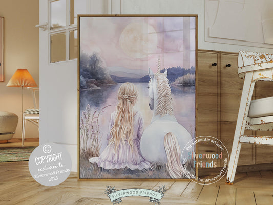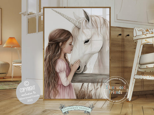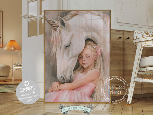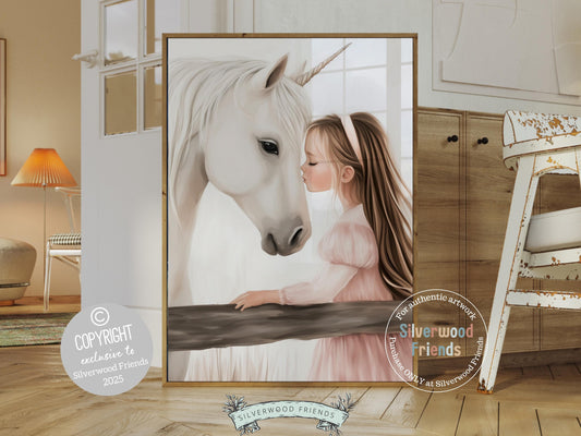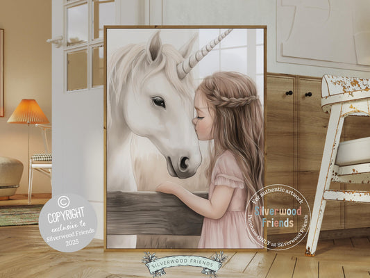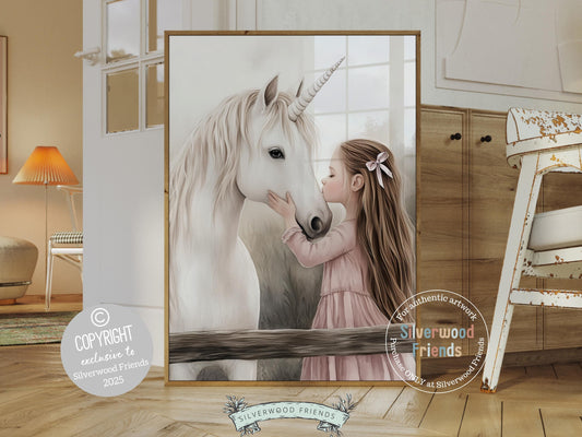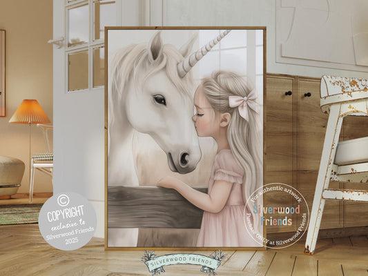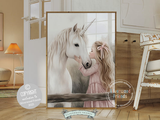 Little Girl Unicorn Nursery Print - 008