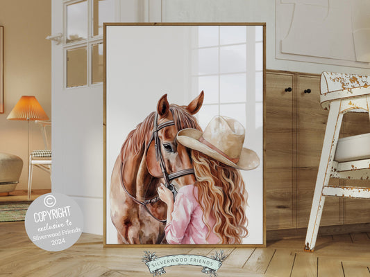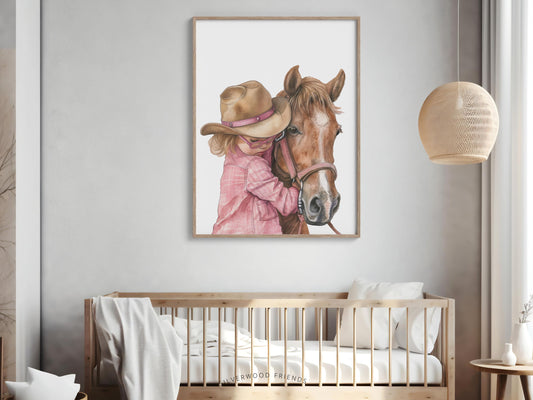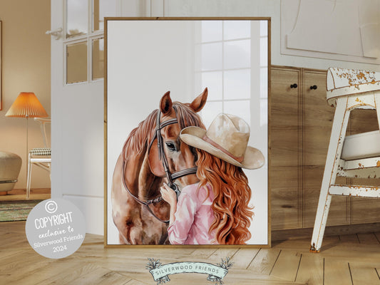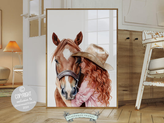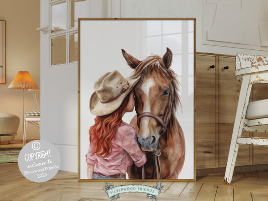 Red Haired Cowgirl Horse Nursery Print - 005
