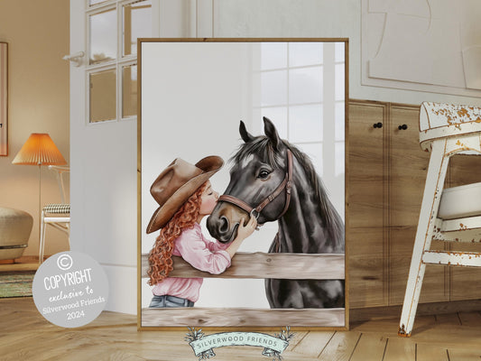 Red Hair Cowgirl Horse Nursery Print - 002