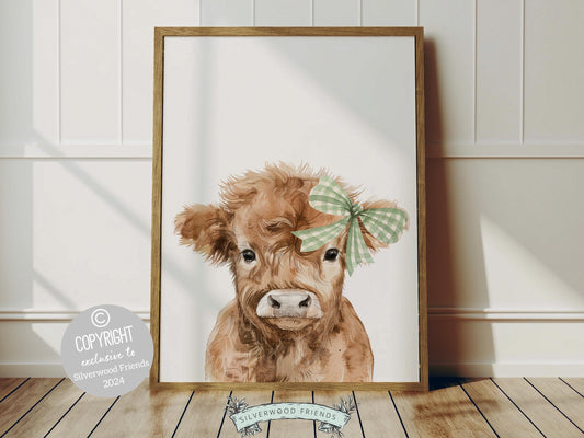 Highland Cow Sage Green Nursery Print