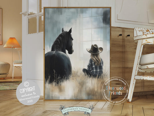 Moody Cowgirl Horse Nursery Print - 001