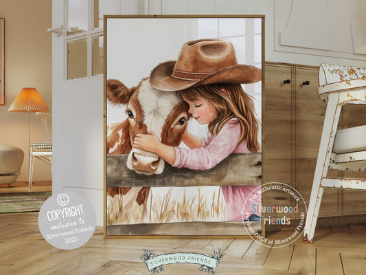 Little Cowgirl and Hereford Calf Nursery Print - 001