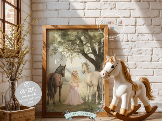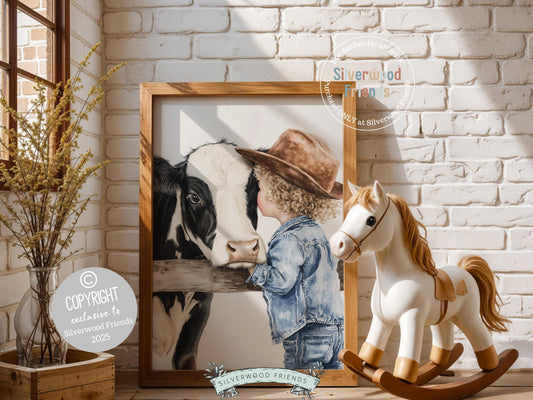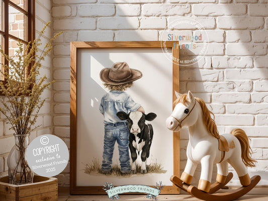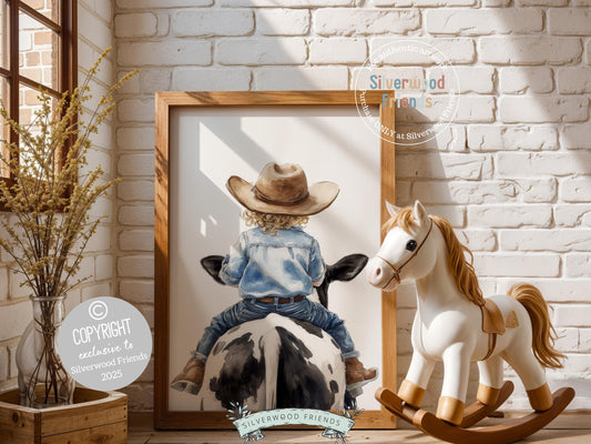 Cowgirl Barnyard Cat Horse Nursery Print - 001