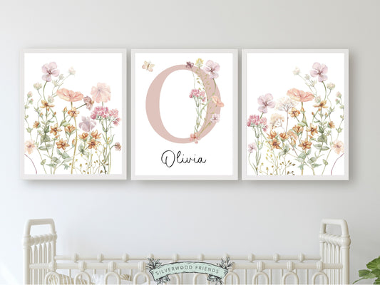 Pink Wildflower Nursery Prints - Personalised 001