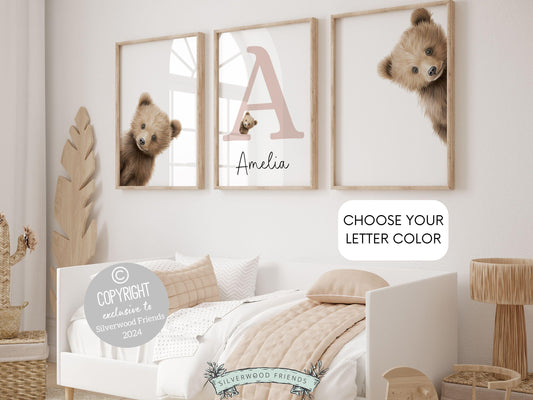 Peeking Bear Nursery Print - Personalised 002