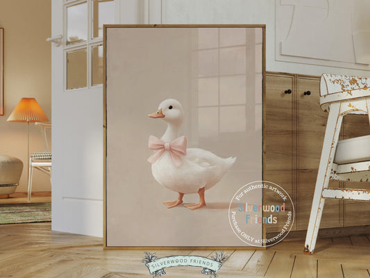 Peeking Brown Highland Cow in Pink Bows Nursery Print - 002