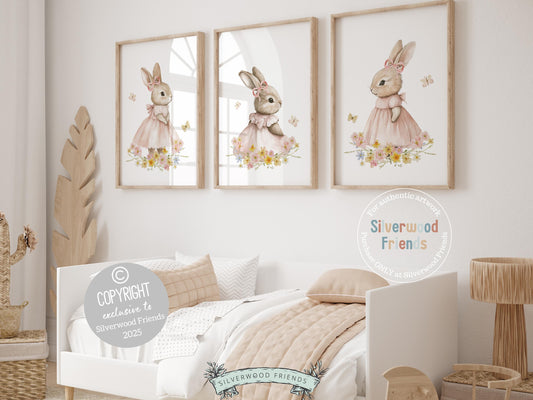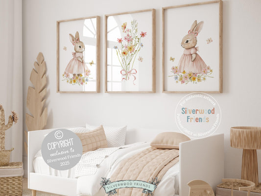 Baby Girl Pink Highland Cow Nursery Prints - 003