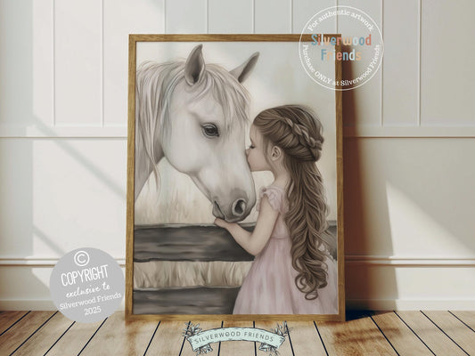 Cowgirl Barnyard Cat Horse Nursery Print - 001