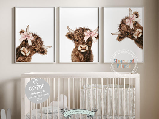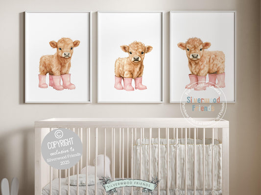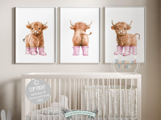 Baby Girl Pink Highland Cow Nursery Prints - 001
