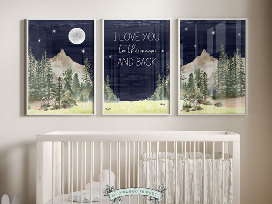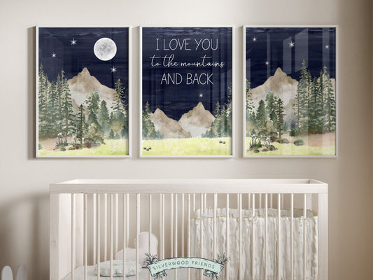 Mountain Theme Nursery Prints - I Love You To The Moon