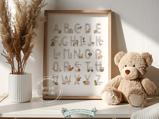 Farm Alphabet Print - Neutral Grey