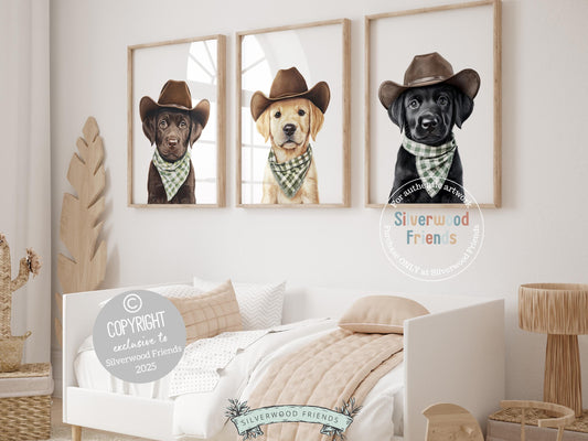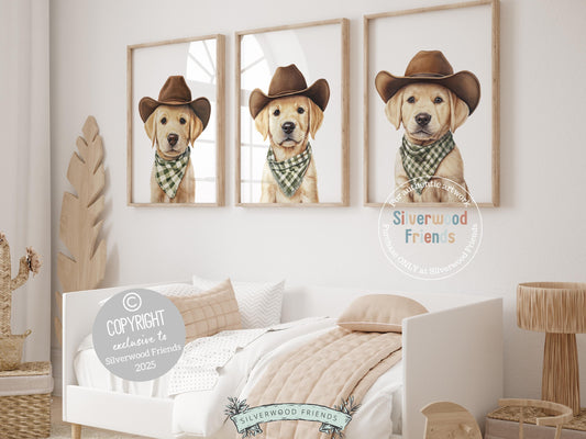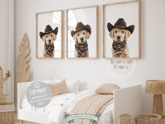 Labrador Dog Cowboy Hat Print - Set of 3 - 010