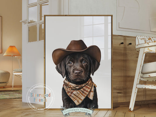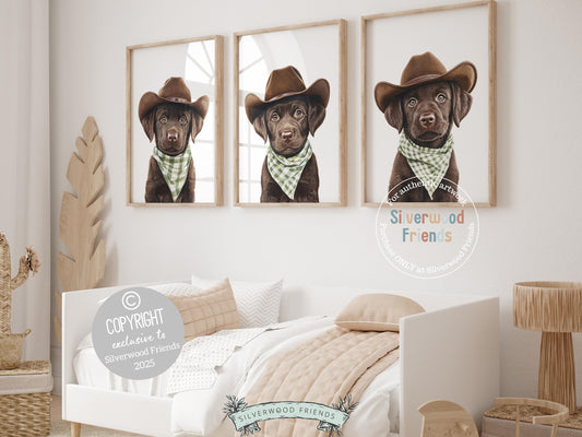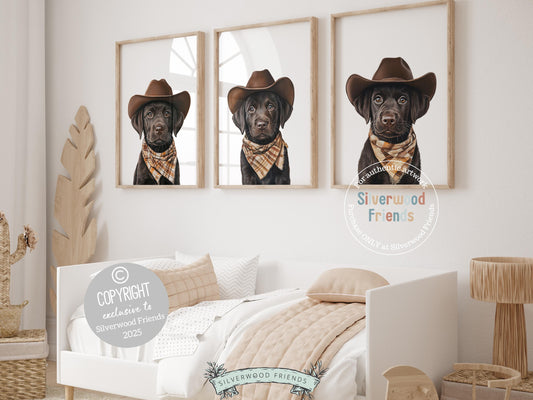 Chocolate Brown Labrador Dog Cowboy Hat Print - Set of 3 - 008
