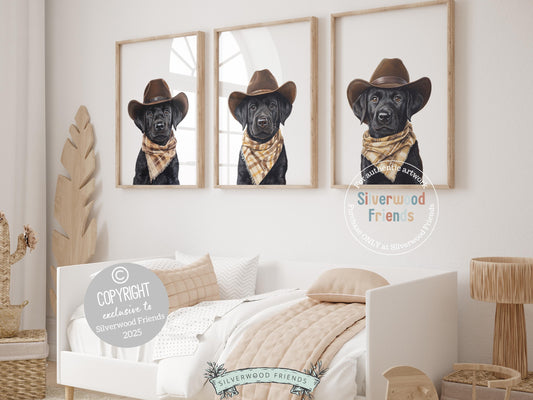 Black Labrador Dog Cowboy Hat Print - Set of 3 - 012