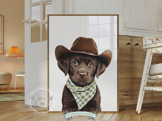 Brown Labrador Dog Cowboy Hat Print - Single - 002