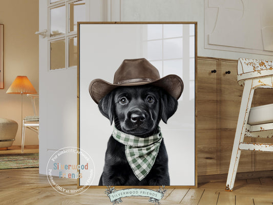 Black Labrador Dog Cowboy Hat Print - Single - 002