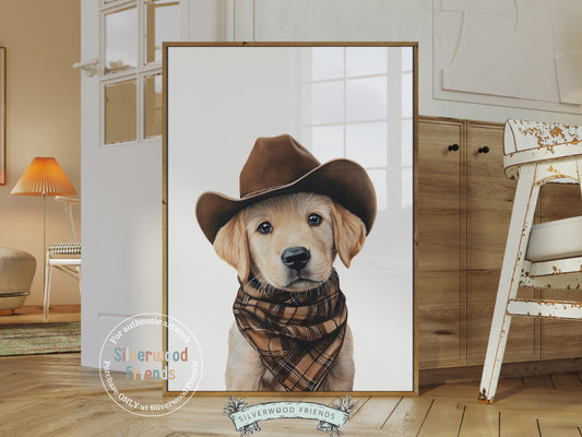 Blonde Labrador Dog Cowboy Hat Print - Single - 003