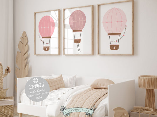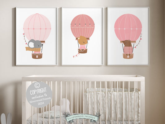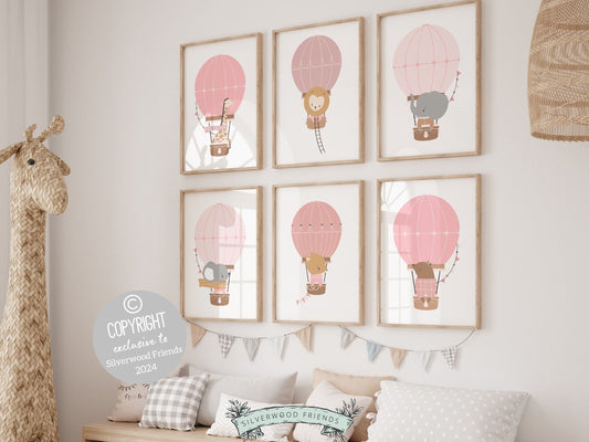 Blush Pink Hot Air Balloon Animal Nursery Prints