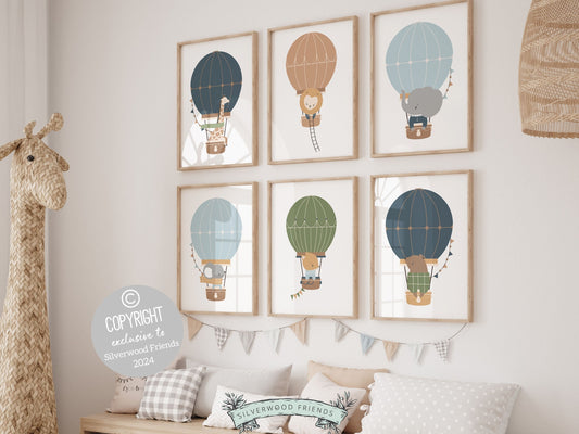 Woodland Animal Air Balloon Nursery Prints - Set of 3