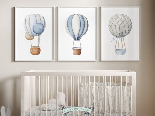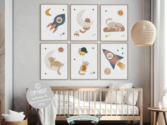 Cloud Moon Stars Nursery Prints - Sage Green, Blue, Grey