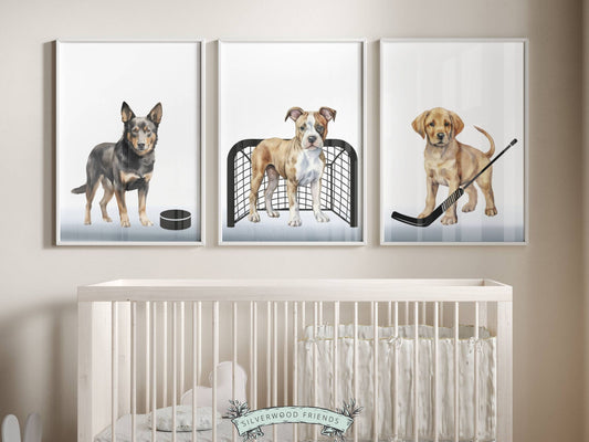 Ice Hockey Dogs Nursery Print
