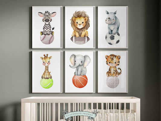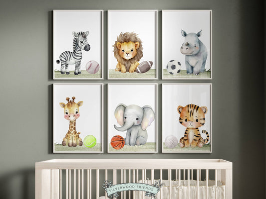 Safari Animals Sports Ball Nursery Prints Set