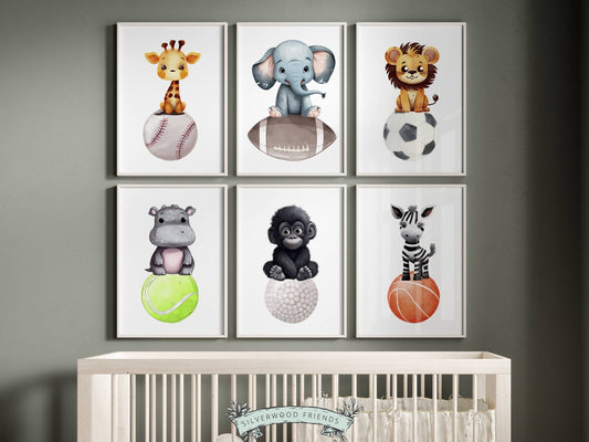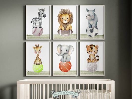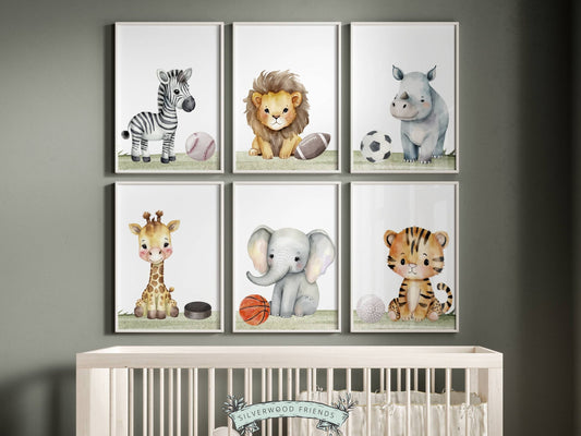 Safari Animal Sport Nursery Print Set of 6