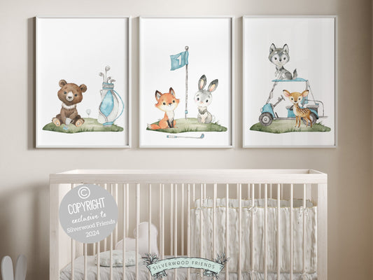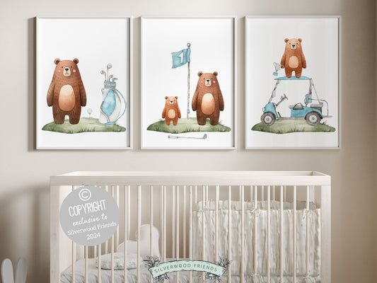 Blue Golf Nursery Prints - Woodland Bears