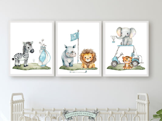 Safari Animal Golf Nursery Prints