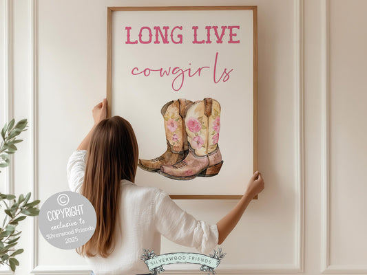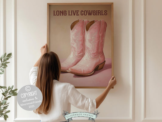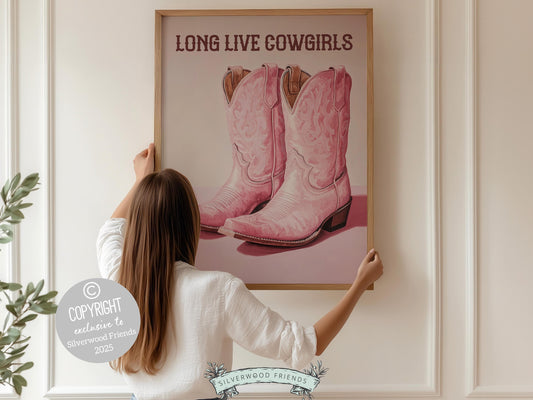 Long Live Cowgirls - Pink Cowboy Boots Print - 001