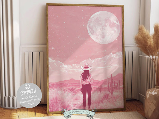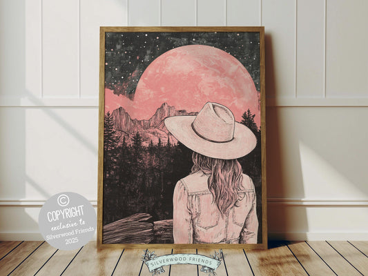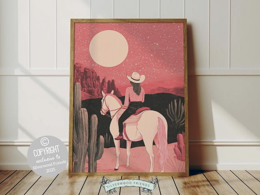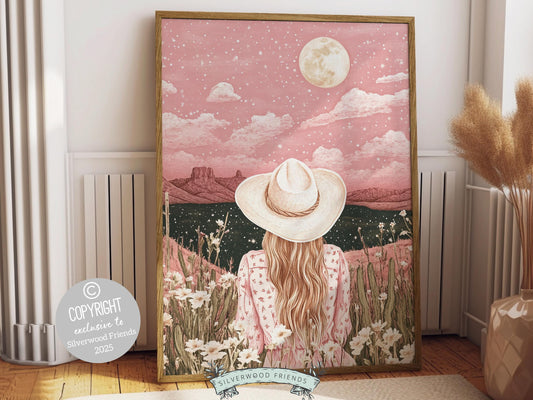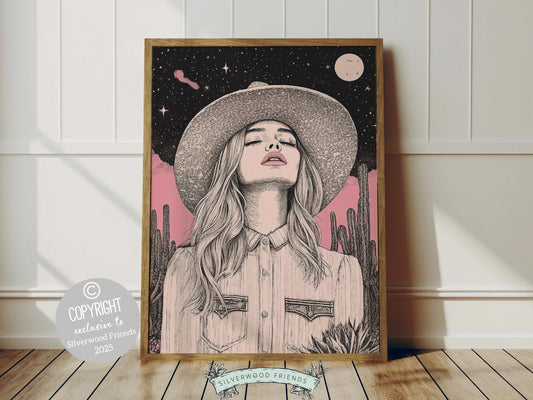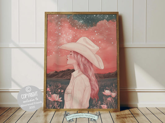 Pink Cowgirl Print - Gone Out West To Sleep Under The Stars