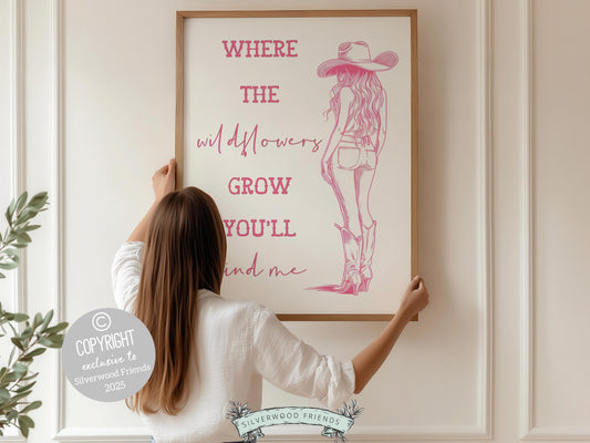 Pink Cowboy Print - Where The Wildflowers Grow You'll Find Me