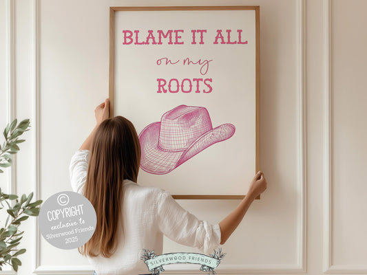 Blame It All On My Roots Pink Cowgirl Hat Print - 002