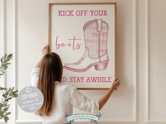 Pink Cowboy Boots Print - Kick Off Your Boots and Stay Awhile - 002