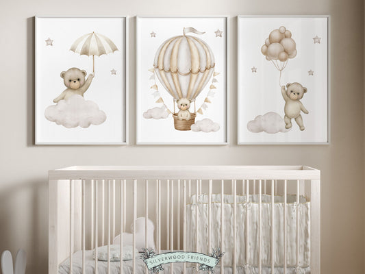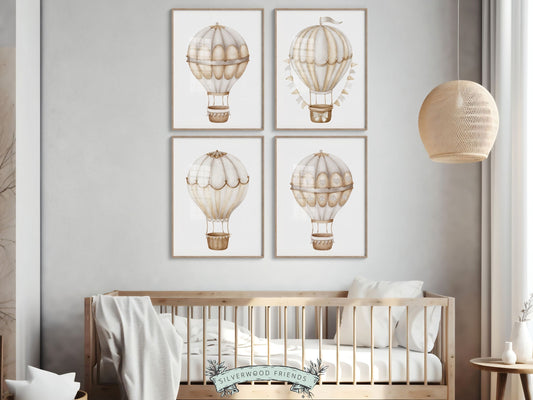 Neutral Hot Air Balloon Nursery Prints - Set of 4