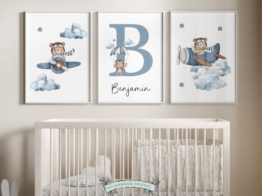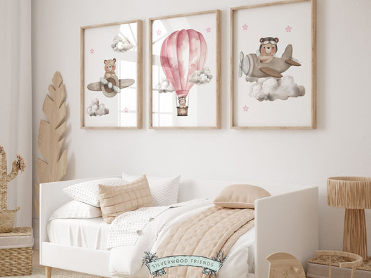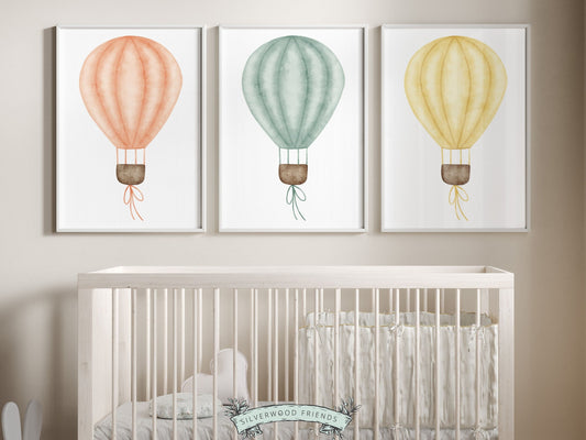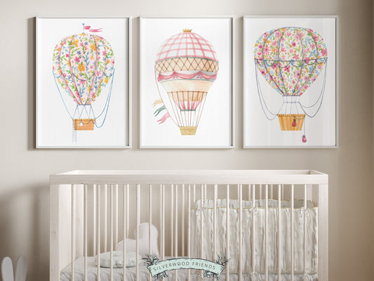 Watercolour Hot Air Balloon Nursery Prints - Set of 3