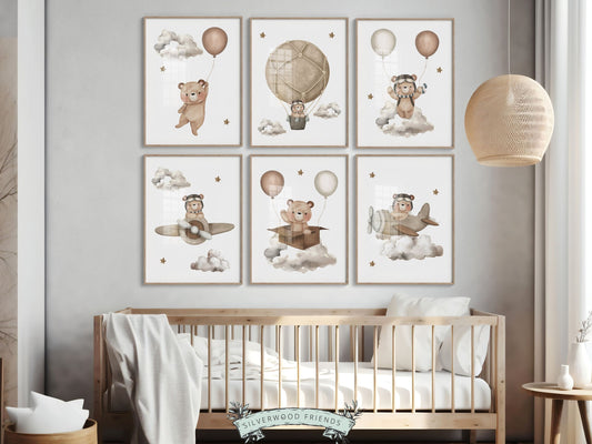 Safari Hot Air Balloon Nursery Prints Set of 6