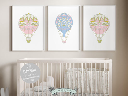 Pastel Hot Air Balloon Nursery Prints Set of 3