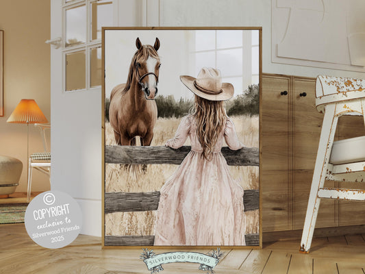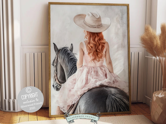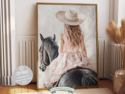 Little Blonde Cowgirl Brown Horse Nursery Print - 002